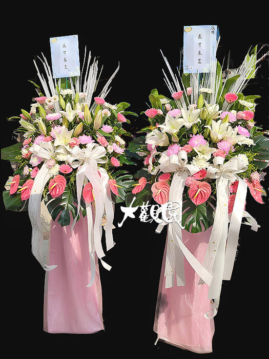 Q058 高架藝術花籃 追思花禮 告別式花禮(一對)
